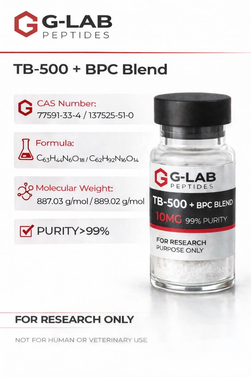 This TB-500 + BPC Blend (10 mg) product is supplied exclusively for laboratory research purposes.